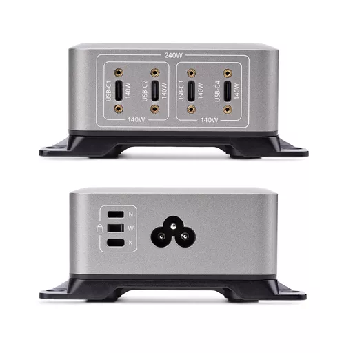 Simplify workspace charging with this 240W USB-C GaN Desk Charger for modern work environments. Charge up to four devices simultaneously with Power Delivery 3.1 and 240W total power (single port 140W EPR), making it ideal for boardrooms and desks.